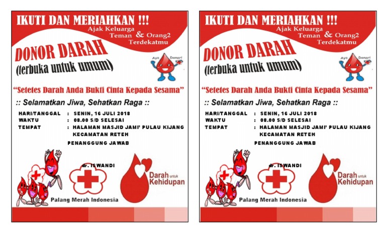 Kegiatan berlangsung dengan aman dan lancar pamflet donor darah. Seperti yang diketahui, darah selalu berkaitan erat dengan kehidupan.